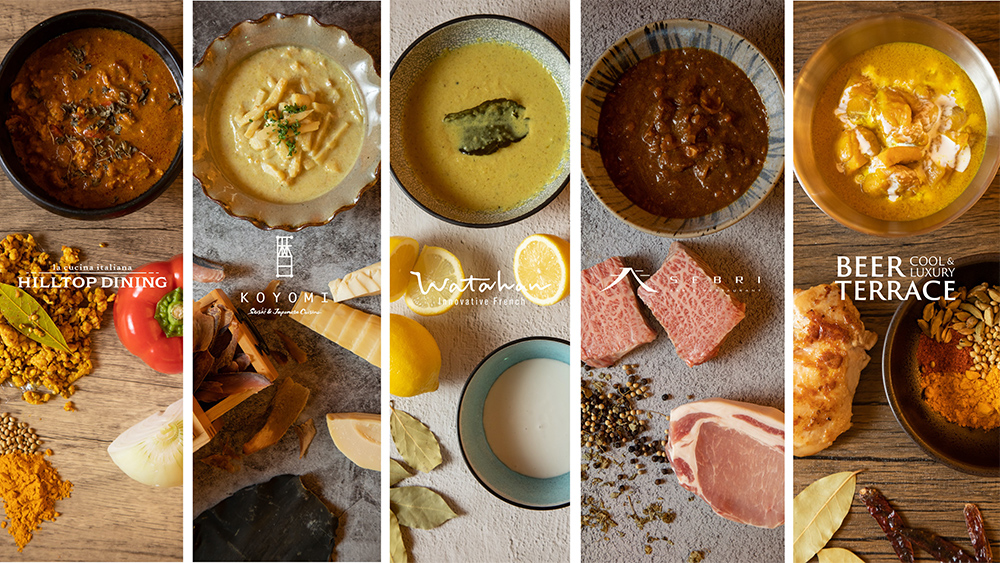 フレンチ・イタリアン・和食など、各シェフの個性豊かなこだわりのカレー5種、このビアテラスのためだけにご用意しました。