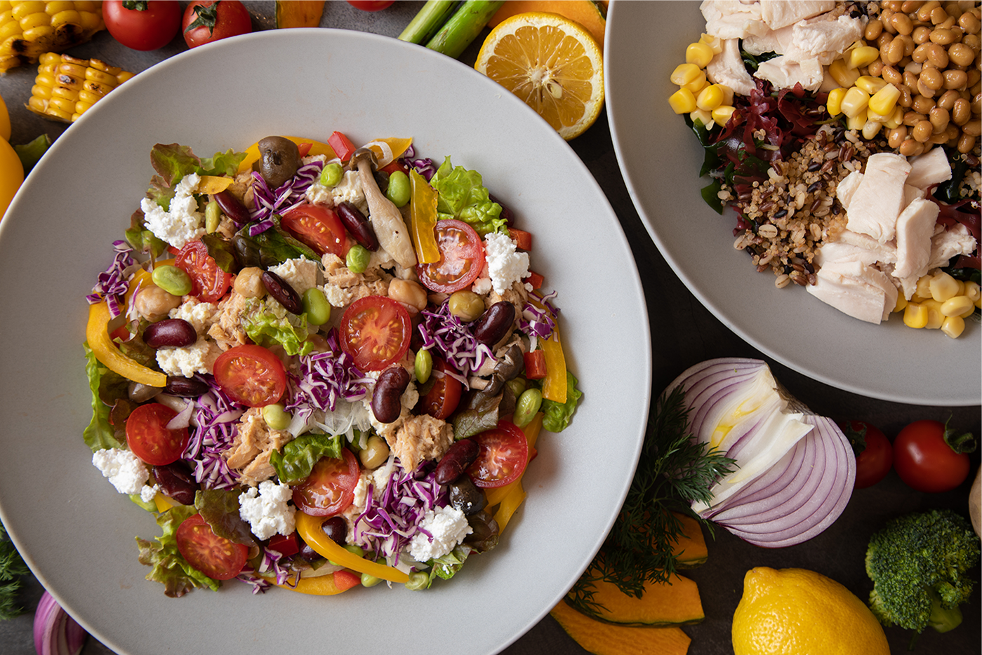 MYO stands for "Make-Your-Own." Enjoy your original salads by choosing vegetables you need according to your physical condition and mood from a wide variety of about 18 types of vegetables and toppings. You can create a satisfying salad if you add meat and vegetables from the grill corner.