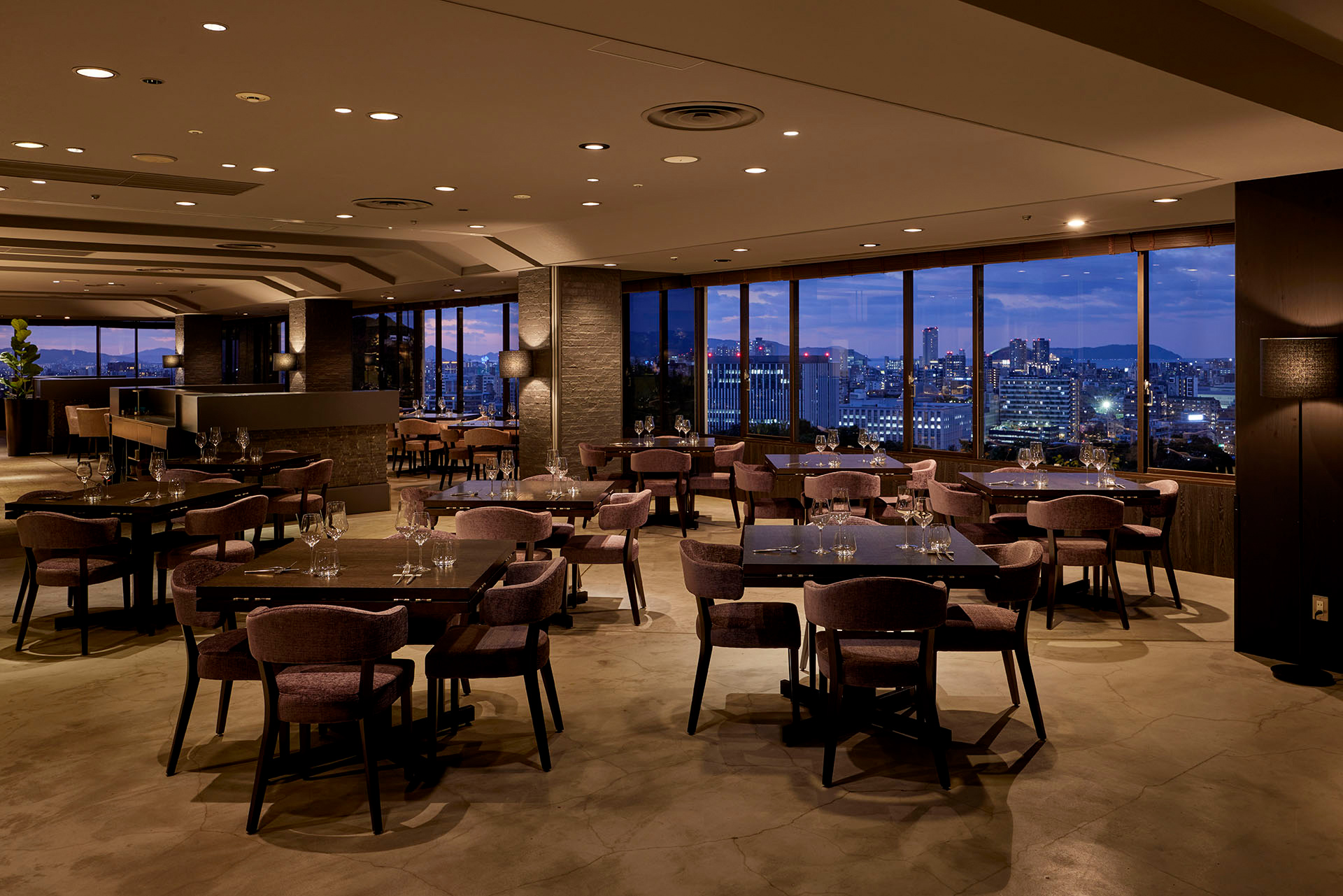 福岡市街や博多湾を一望する美しい眺望とともに、心地よく優雅なひとときをお楽しみいただけます。