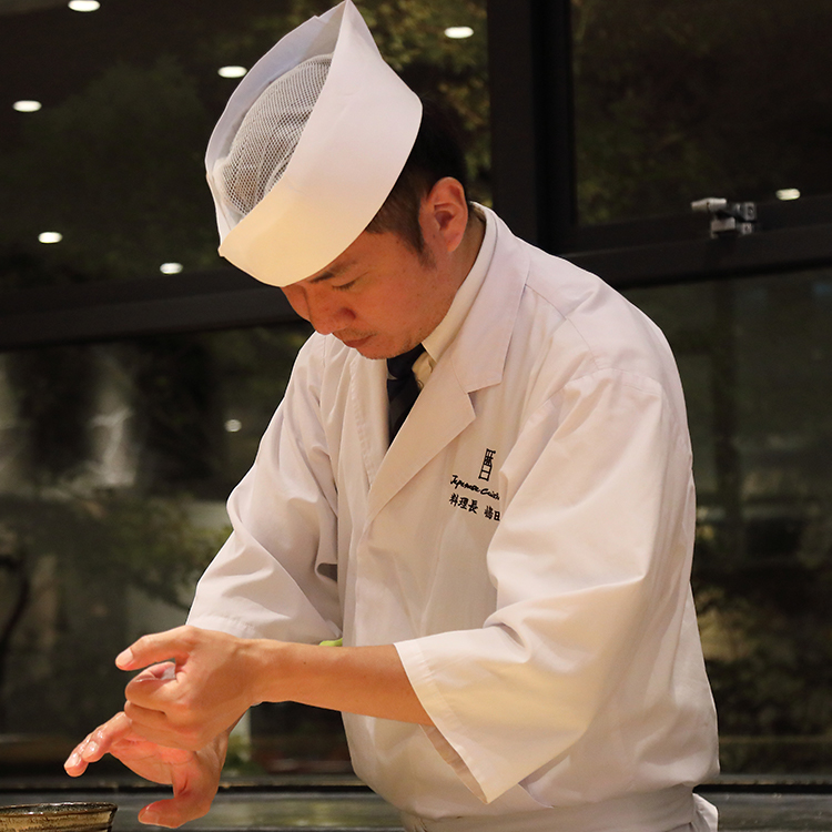 高級旅館やホテルの総料理長を歴任。出汁にこだわり、季節の節目を表す二十四節気を基に旬の素材の持ち味を余すことなく引き出す日本料理に定評があります。季節を五感で感じることができる空間、料理づくりに重きを置いています。
