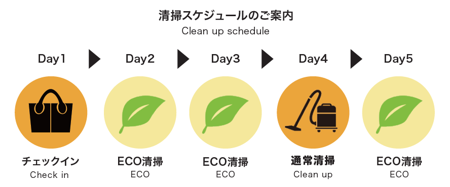 ●4泊以上お泊りのお客様は衛生管理上、3日ごとに通常清掃を行います。